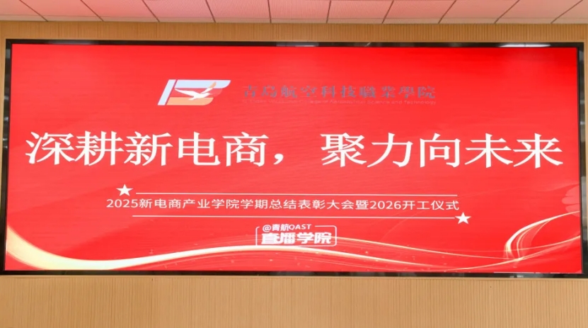 深耕不辍,方得硕果。聚力前行,未来可期。本次2025新电商产业学院学期总结表彰大会暨2026开工仪式,既是对过往学期育人成果的全面总结,也是对2026年发展的全新展望。新的一年,青岛航空科技职业学院新电商产业学院将继续以产教融合为抓手,深度践行直播人才培养 “北方模式”,以榜样为引领,凝聚师生合力,不断优化人才培养模式、锤炼学子专业技能,为区域新电商行业输送更多复合型、技能型人才,在深耕新电商的道路上步履不停,聚力向未来,书写人才培养的崭新篇章!