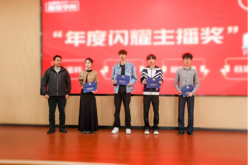 随后,大会进入隆重的表彰环节,对学期里在专业领域表现优异的学子、深耕育人一线的导师予以表彰,每一份荣誉都凝聚着汗水与坚守。教务处刘瑞处长为马同学等4名同学颁发学期新锐主播奖,表彰他们锐意进取、快速成长的专业态度。