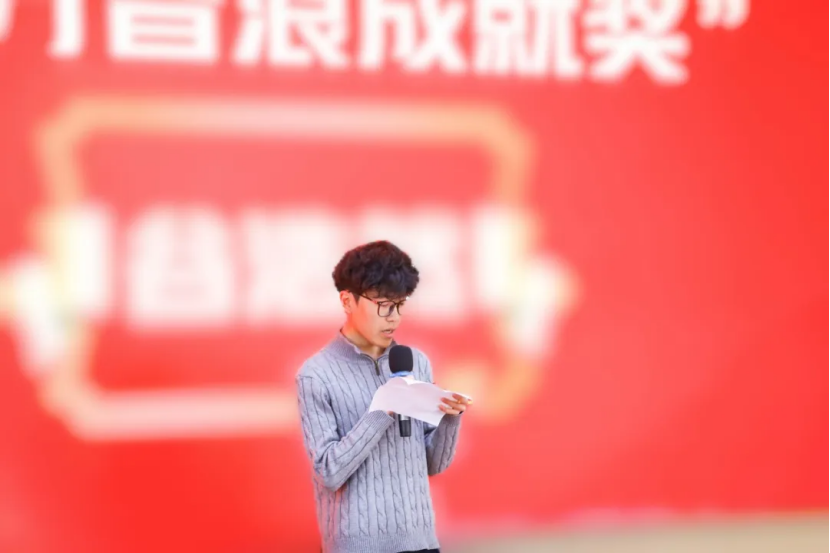 在年度闪耀主播奖颁奖后,大会特别为谷同学颁发百万音浪成就奖,表彰其在直播实践中取得的优异成绩,谷同学也在现场分享了百万音浪的实操心得,毫无保留地将直播技巧、运营思路与在场师生交流,让大家受益匪浅。