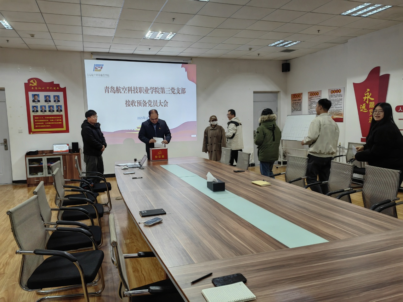 青岛航空科技职业学院第三党支部召开接收预备党员支部党员大会