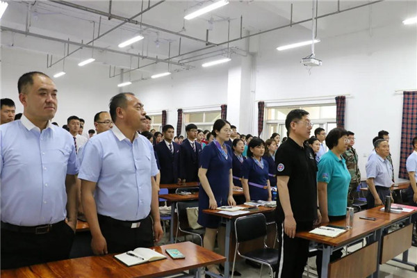 6月8日下午,青岛航空科技职业学院党校第1期入党积极分子培训班开班典礼暨党课培训隆重举行。四川泛美教育投资集团特聘党建专家曹慧贤,青岛航空科技职业学院院长翟思成,青岛泛美投资有限公司副总裁兼学院军体总教官薛龙奎,学院副院长曹青等领导出席开班仪式,各二级学院、处室负责人以及130余名师生入党积极分子参加会议。