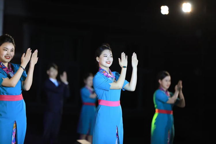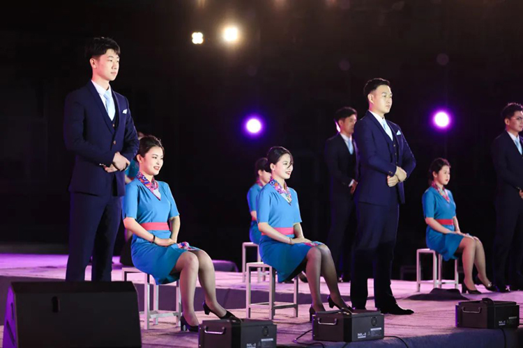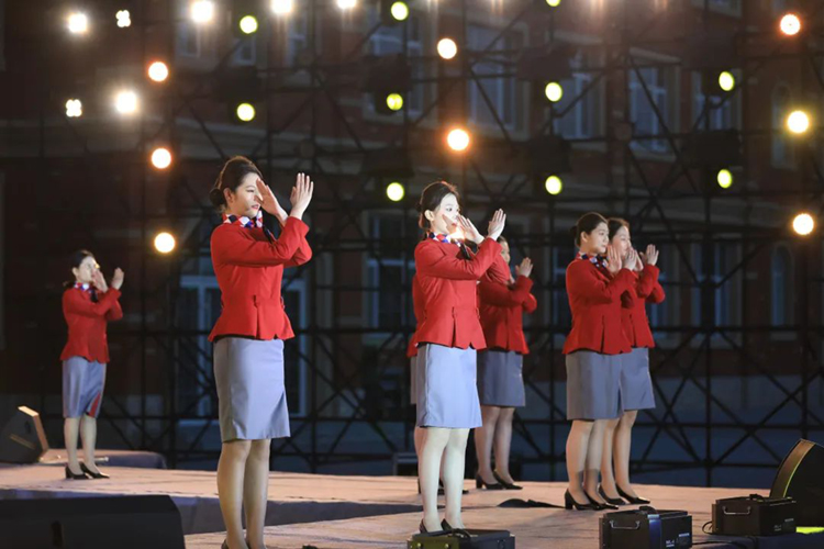 优雅的示意、精彩的舞蹈,从蹲起到对话,从举起到落下,一颦一笑、举手投足间都透露着,民航人的专业素质,甜蜜的微笑搭配优雅得体的举止,比声音语言更有魅力。