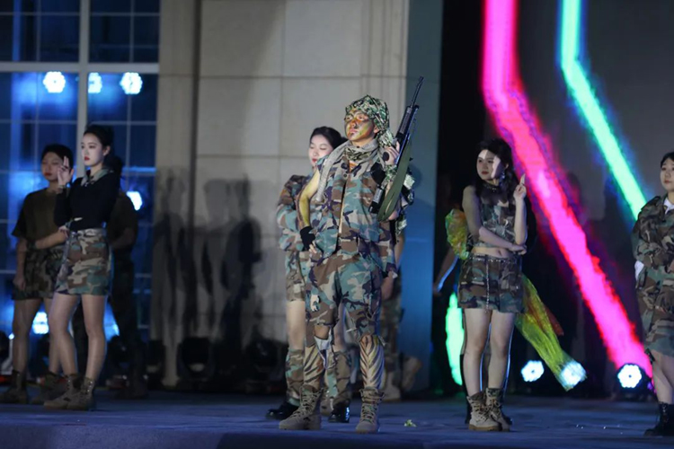 迷幻的音乐,炫酷的迷彩,狂野的妆容,不失时机的注入了活泼和青春的格调,无时无刻不在撩拨我们的心弦。在节奏中迸发,在音符中闪现,这群年轻的青航学子们,他们就是名副其实的标准军人。