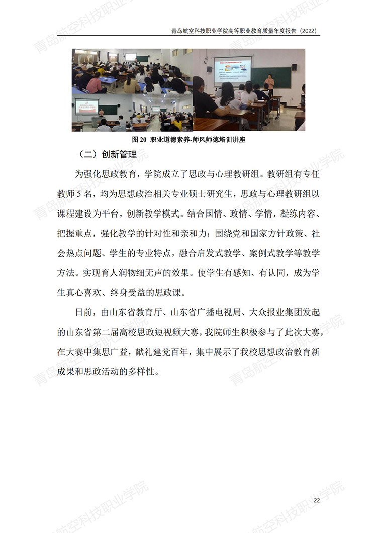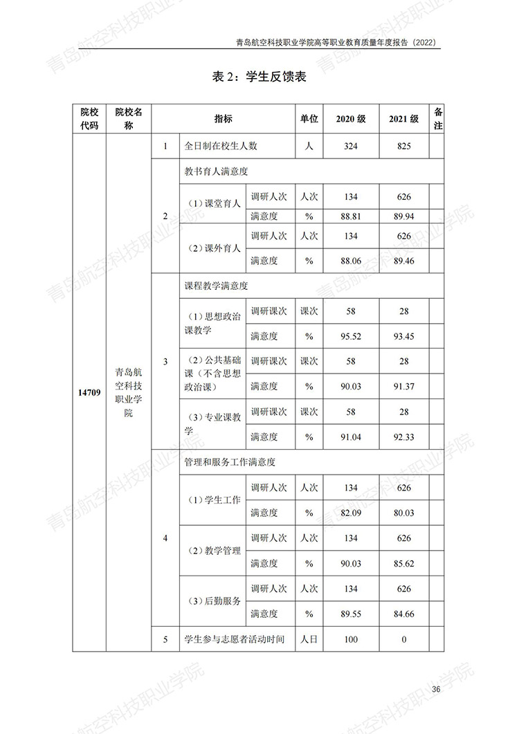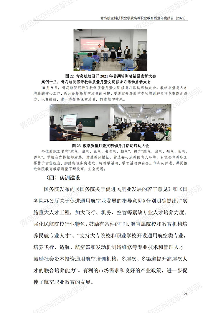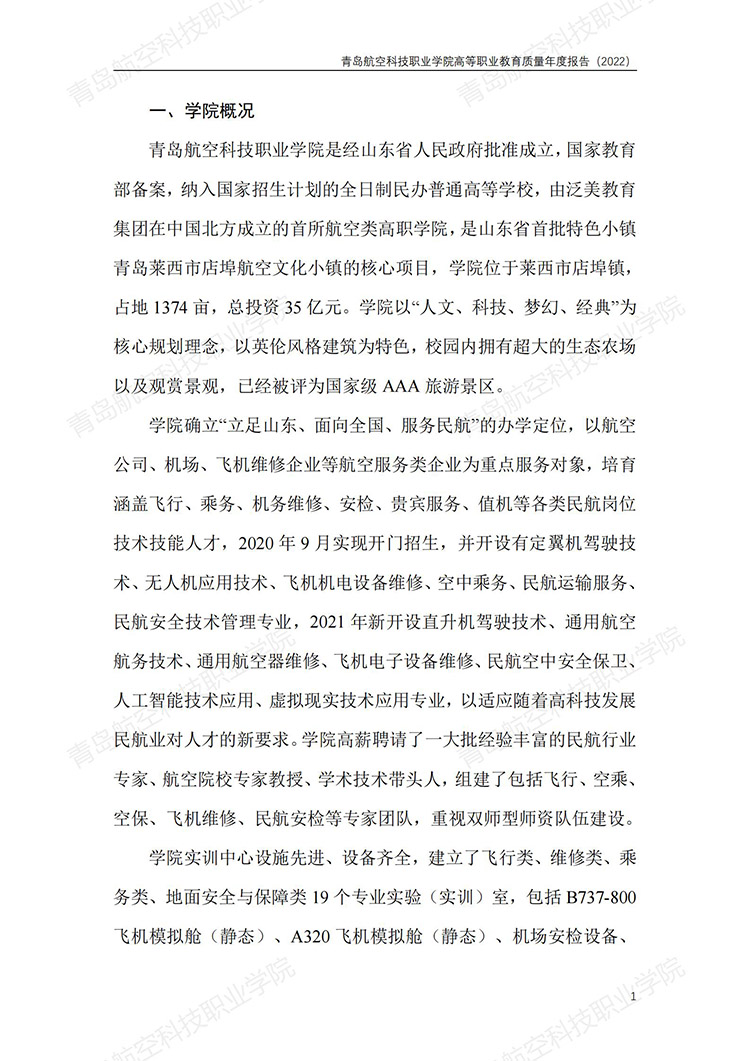青岛航空科技职业学院高等职业教育质量年度报告 (2022 年)