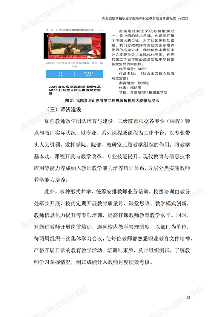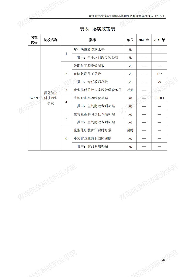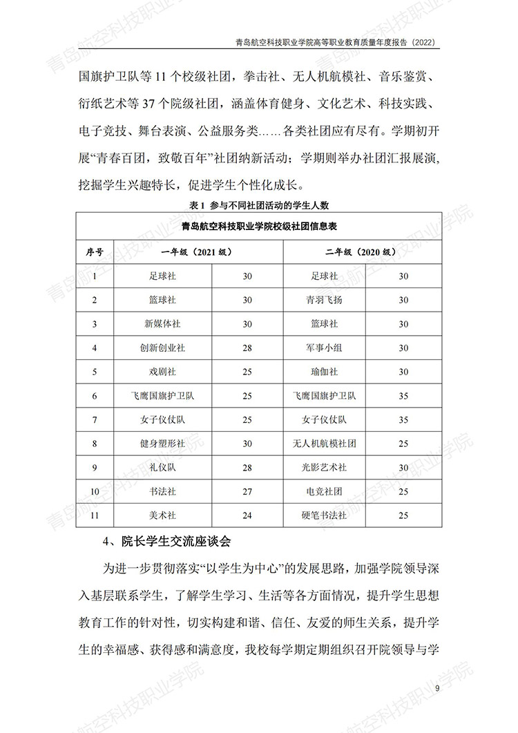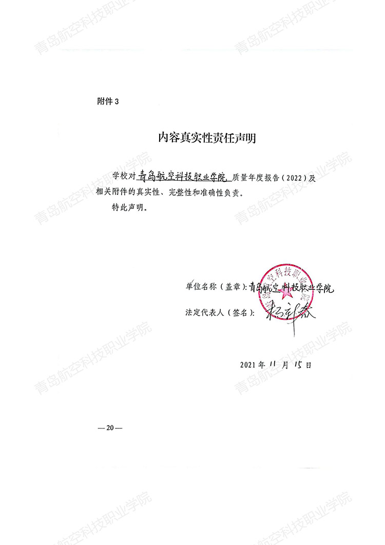 青岛航空科技职业学院高等职业教育质量年度报告 (2022 年)