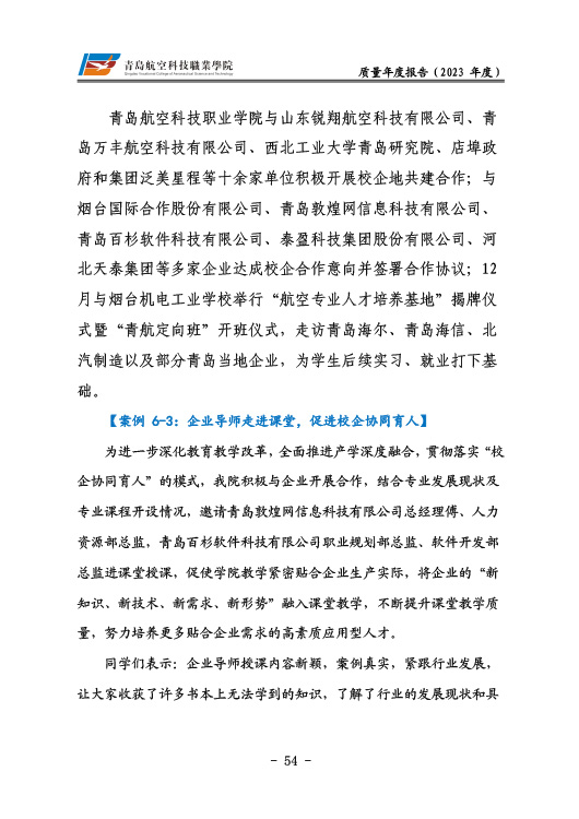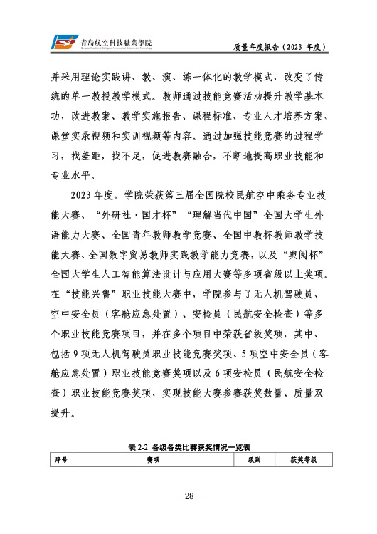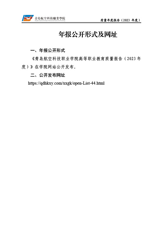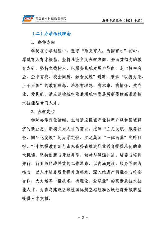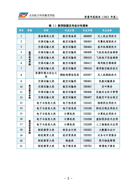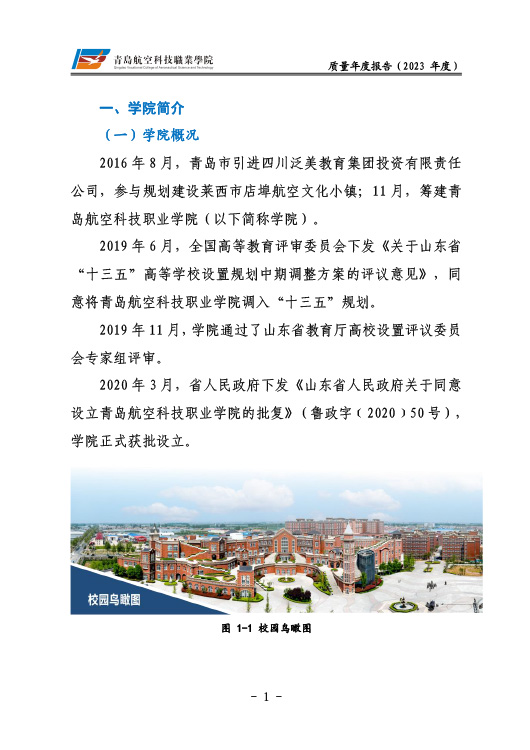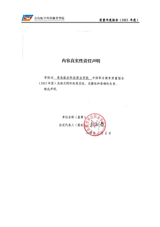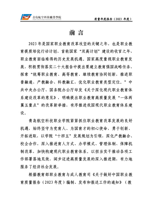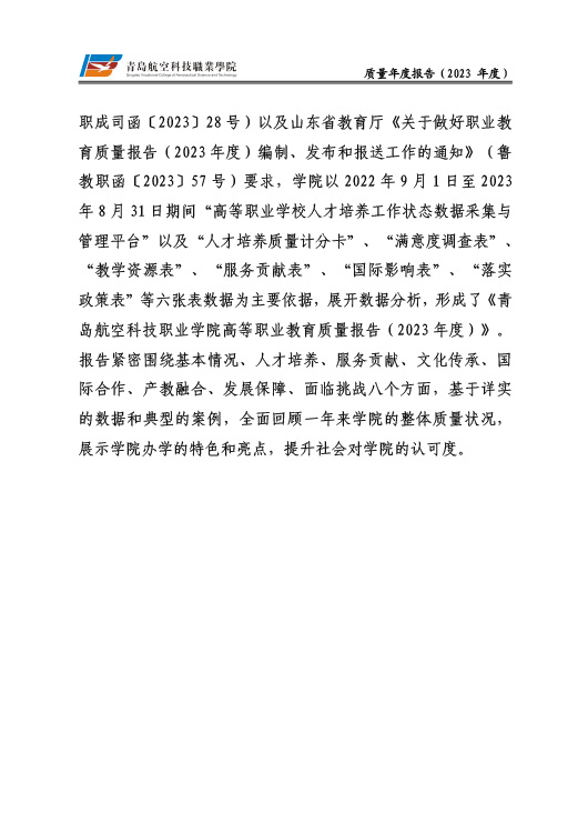 青岛航空科技职业学院高等职业教育质量报告(2023年度)