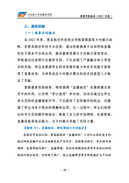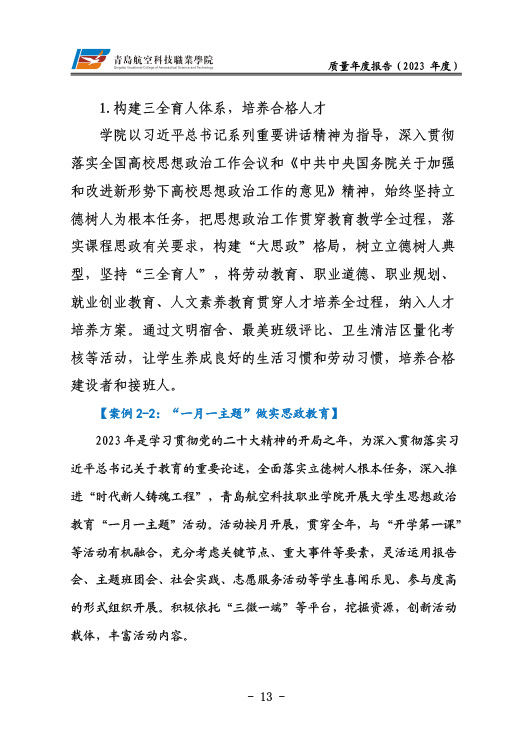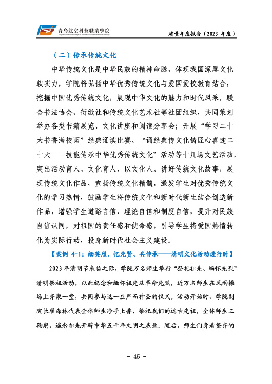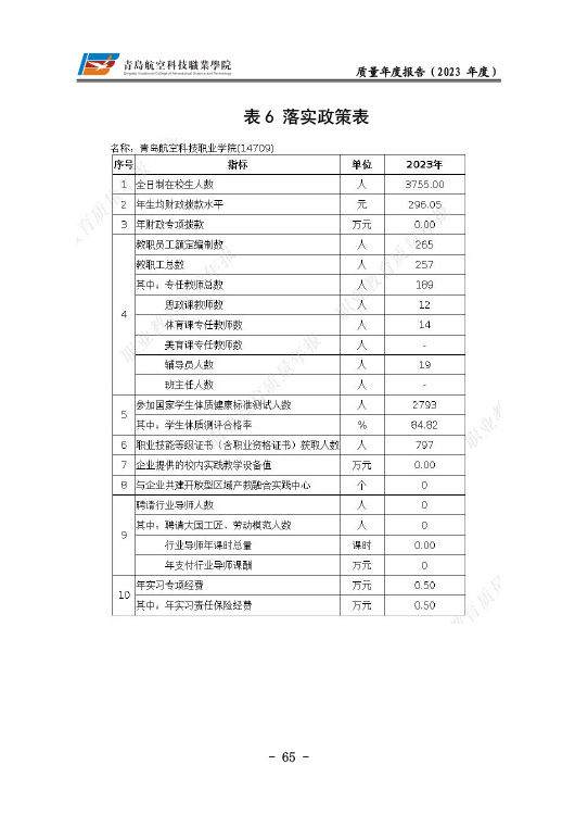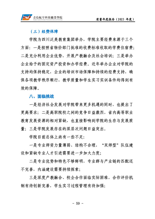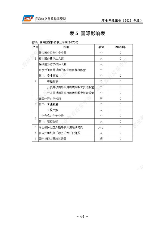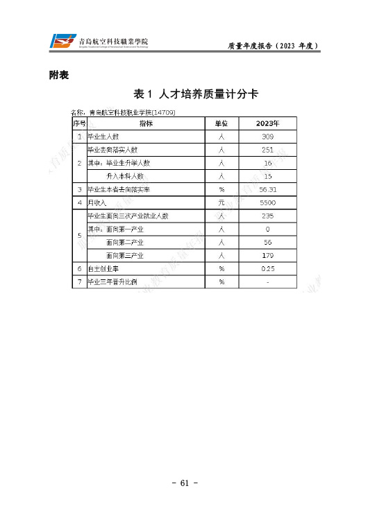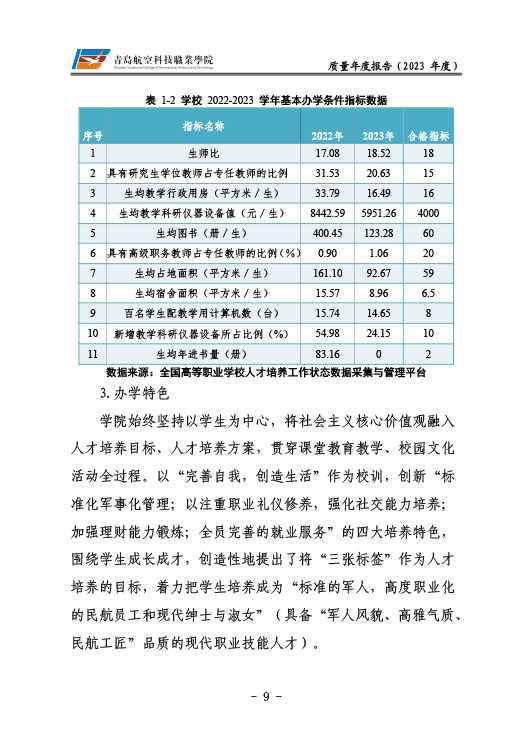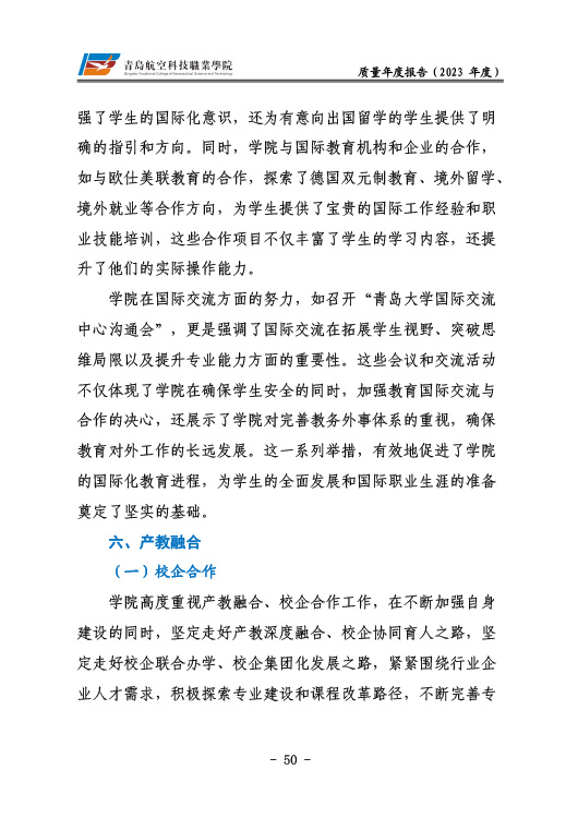 青岛航空科技职业学院高等职业教育质量报告(2023年度)