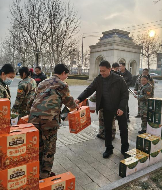 为表达学校对坚守岗位教职员工的诚挚感谢和新春祝福,常兴林副校长代表学校带领后勤处、保卫处等相关部门负责人,为大家发放了暖心的春节慰问品。