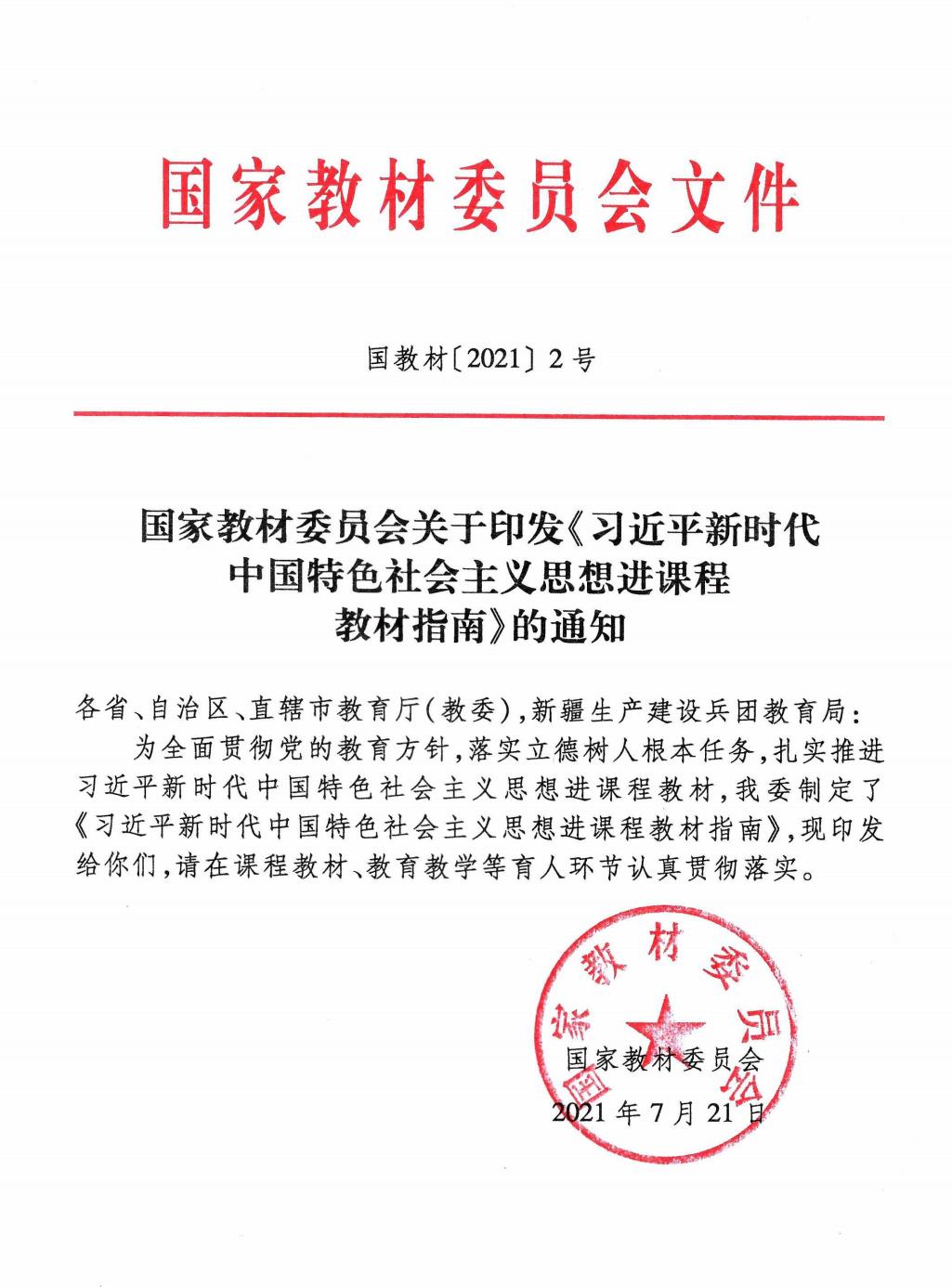国家教材委员会关于印发《习近平新时代中国特色社会主义思想进课程教材指南》的通知
