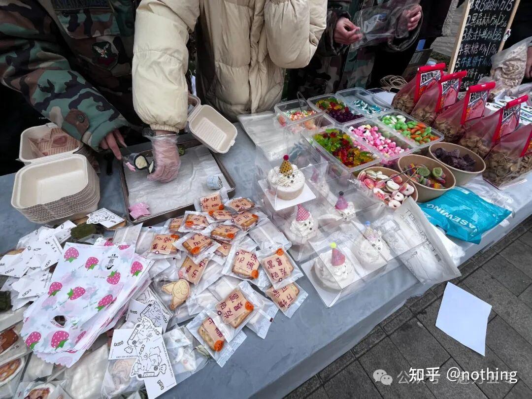 摊位前的同学们细心地为顾客介绍每一款甜品的特色,细致地打包,双手递上这份甜蜜的心意,微笑着回应每一句赞美与问询,让温暖与甜蜜在这一方小小的天地里蔓延开来。同学们手捧着甜品,在热闹的集市中漫步,与好朋友们分享着甜蜜,欢声笑语回荡在集市的每一个角落。