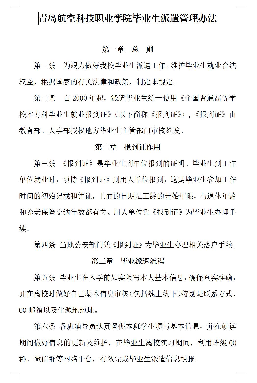 青岛航空科技职业学院毕业生派遣管理办法