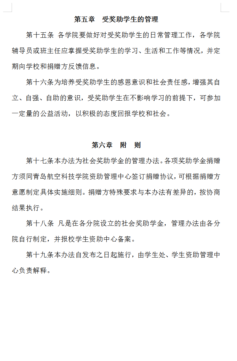 青岛航空科技职业学院社会奖助学金管理实施办法