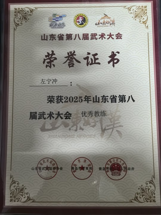 喜报|信息工程学院左宁冲老师荣获山东省第八届武术大会“优秀教练员”称号