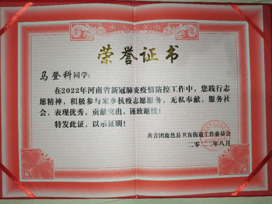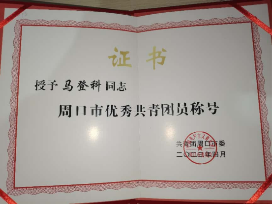 马登科最突出的特长是拥有五年团工作经验,从高中三年担任团委会主席,到大学担任学院团总支学生副书记,他在服务同学、推进团组织建设的过程中,不断锤炼自身能力,还曾荣获“周口市优秀共青团员”荣誉称号,带领团组织持续斩获“优秀团总支”称号。