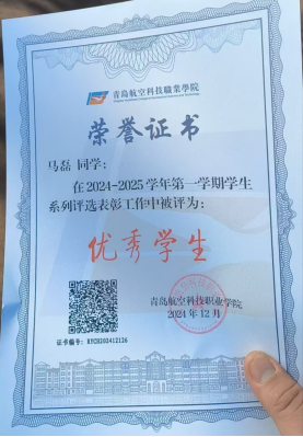 本期主角:青岛航空科技职业学院 23级信息工程学院计算机应用技术2班 马磊