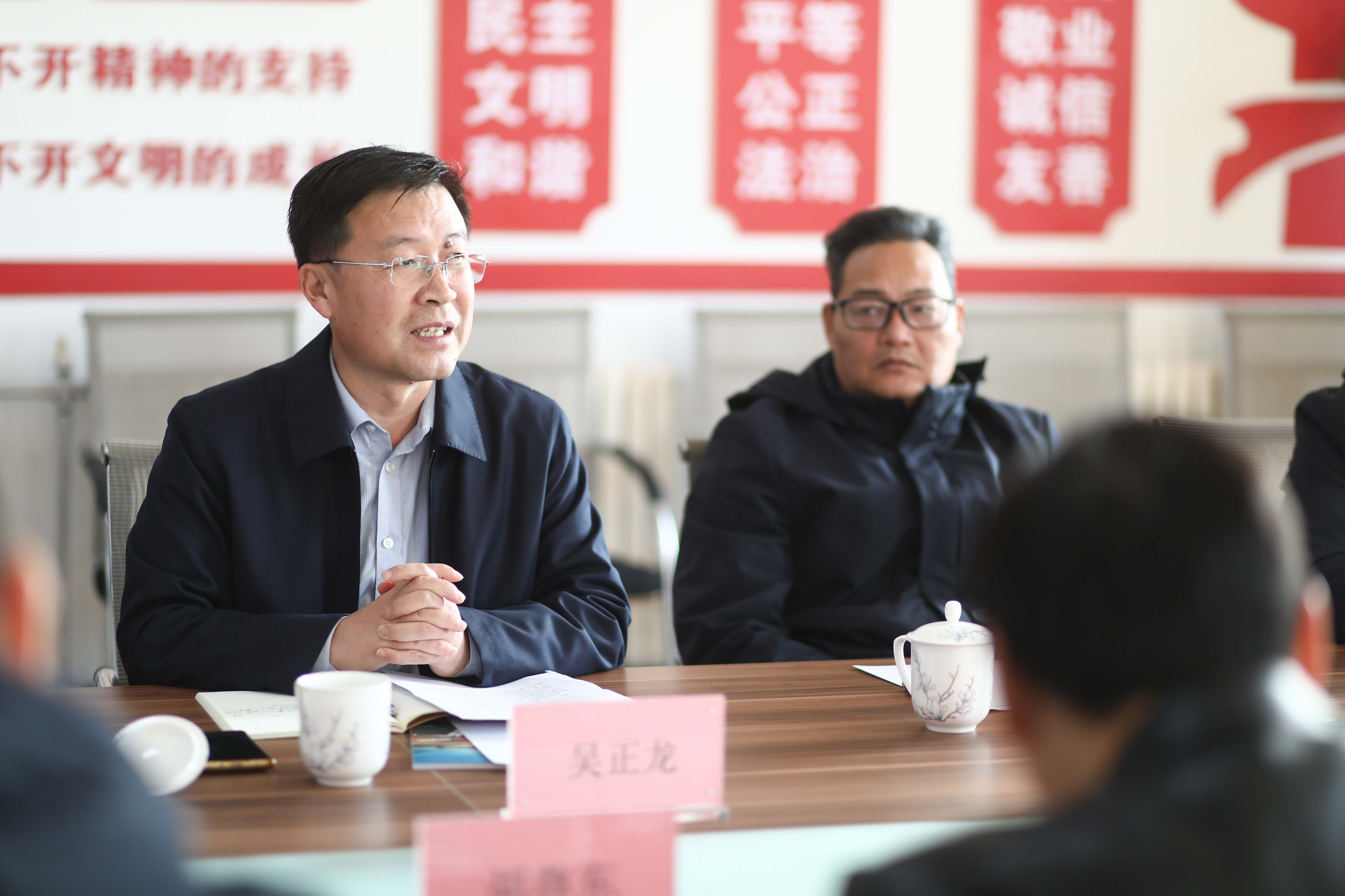 吴正龙介绍了此次调研工作的目的和意义。调研组通过查阅相关资料,核对了学校统计数据,了解了学校未来工作方向和当前建设发展中的重点与难点,并就有关问题与相关部门负责人展开深入交流。
