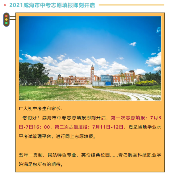 2021山东省(威海地区)五年一贯制志愿填报即刻开启,青岛航空科技职业学院你值得拥有